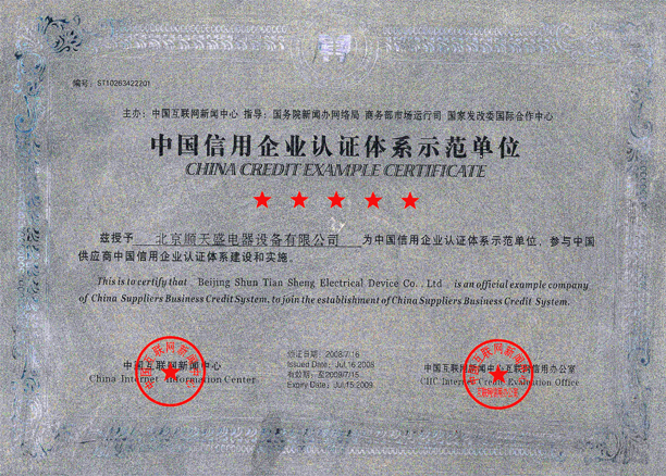 中國信用企業(yè)認證體系示范單位